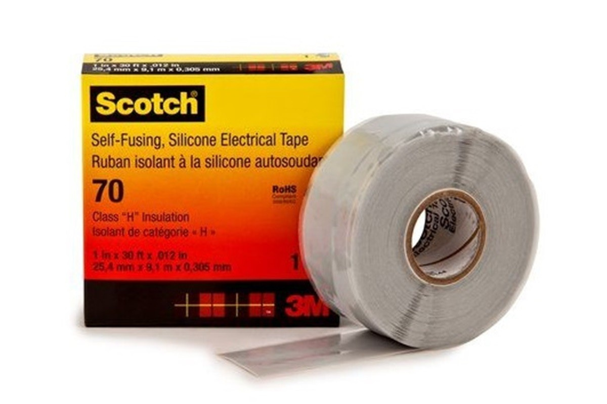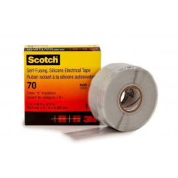 The 3M Scotch 70 light gray silicone self-fusing tape is resistant to electrical arcs, tracking currents, UV radiation, and other outdoor environmental influences. It has excellent self-welding and self-cleaning capabilities, is very gentle on the surface, and peels off well. It does not contain halogens and when burning, it produces only minimal smoke, which is neither aggressive nor toxic. Thanks to this, it is suitable for insulation and sealing on so-called. non-flammable cables. It withstands high temperatures and remains flexible even at extremely low temperatures. It is resistant to cable oils, resins, and impregnating agents. It winds with only a slight constant tension at 10 to 100% elongation. It is equipped with a protective film (liner) that is removed before application. Usage: the final outer layer in cable terminations (ensuring a clean entry into connections), insulation on outdoor lines, transformers, non-flammable cables, as an oil barrier in transition joints, etc. Technical specifications of the carrier: silicone rubber total thickness: 0.3 mm temperature resistance: 180 °C UV resistance: very good moisture resistance: very good chemical resistance: very good