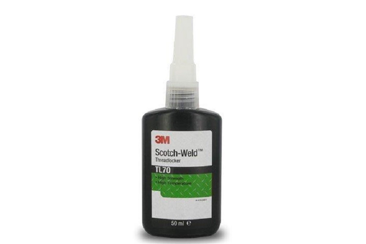 3M Scotch-Weld TL70 is a green anaerobic metal threadlocker with high permanent strength. Suitable for large threaded connections. Prevents the unintentional loosening of threaded connections due to vibrations and seals the threaded connection. Prevents joint rusting. Adheres even to slightly greasy metals. Cures only in the absence of air and the presence of active metal ions. Technical specifications system: anaerobic base: dimethacrylate temperature resistance: 150 °C UV resistance: very good moisture resistance: very good chemical resistance: very good application: application nozzle of the glue bottle
