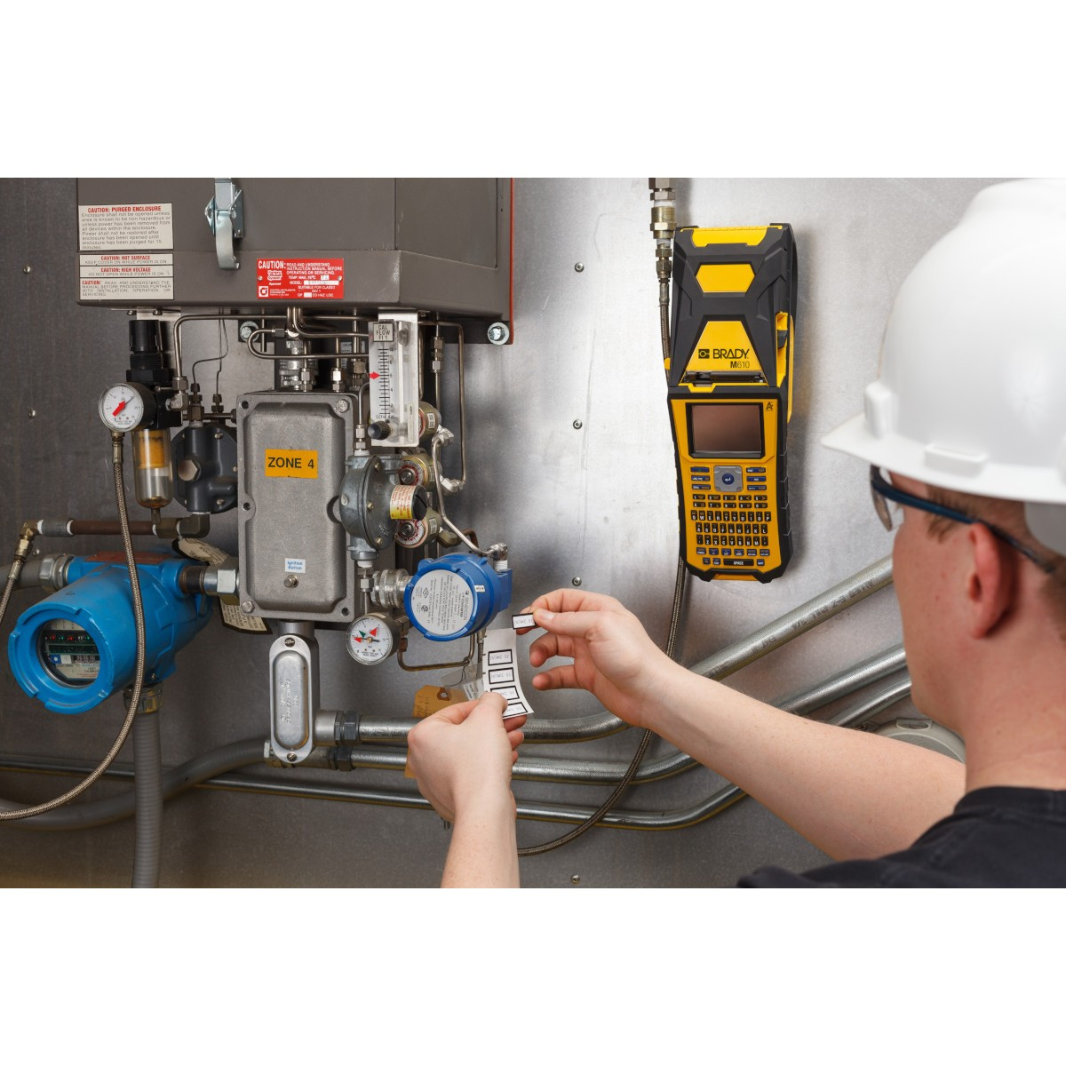 The portable label maker M610-QWERTY-EU-BT is very durable for fieldwork. It also excels in high performance and printing speed of up to 50.8 mm per second. Design and print up to 4500 labels on a single charge using the built-in keyboard, as well as a mobile app or computer software. With the label printer Brady M610-QWERTY-EU-BT you can print any text, barcodes, and even shapes and images.