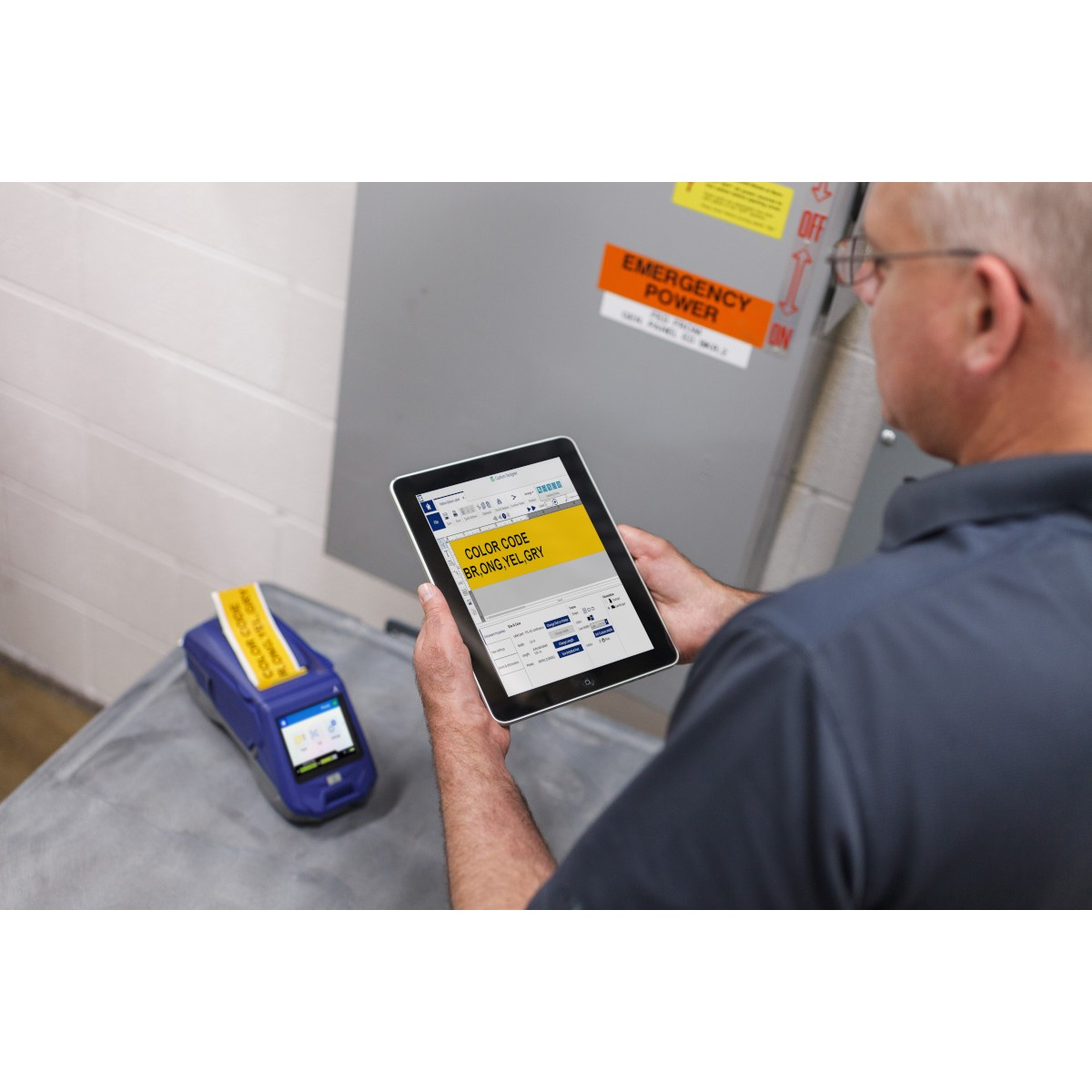 The portable label printer Brady M611-EU-BT-W is very durable for field work. You can easily prepare even the most complex label designs in the field using just a smartphone and the free Express labels app. With the label printer Brady M611-EU-BT-W you can print any text or 1D and 2D barcodes.