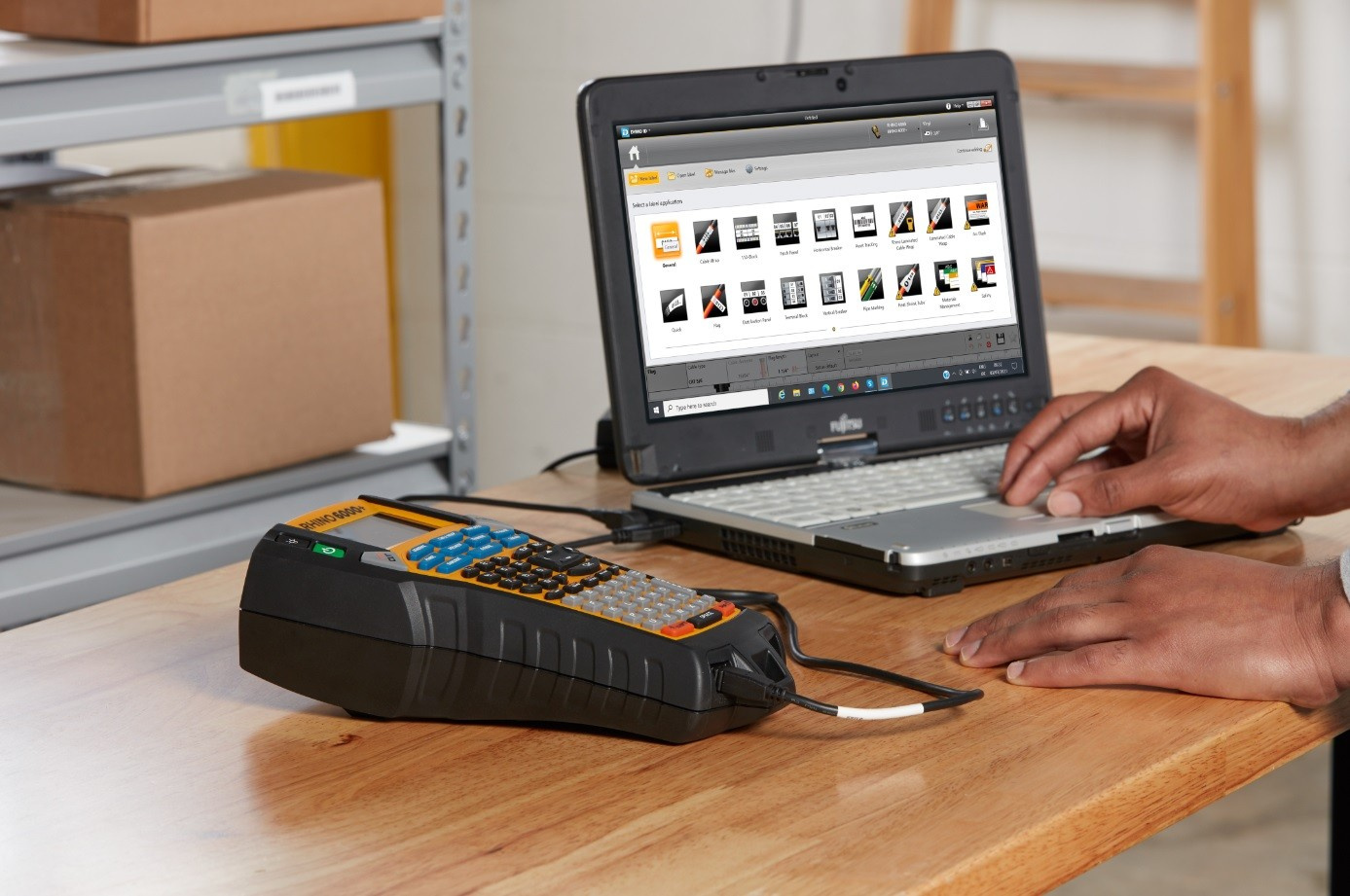 RHINO 6000+ Label Maker is the first label printer from the RHINO product family that allows connection to a PC. The printer not only allows you to load labels from your computer using RHINO CONNECT software and any Windows® application, but also enables you to create perfect labels on the spot. In addition, changes made to the labels in operation can be easily loaded back into the computer.