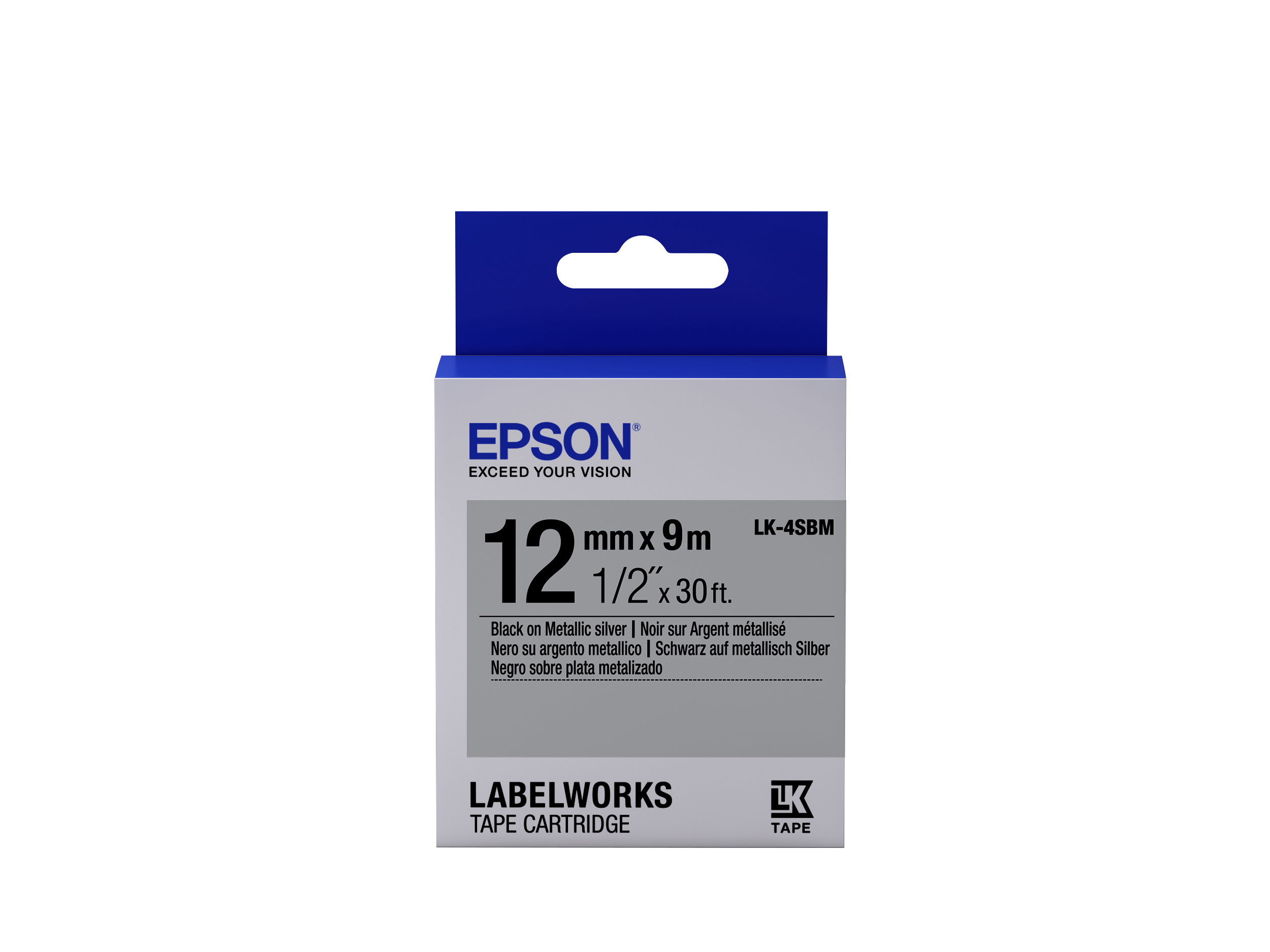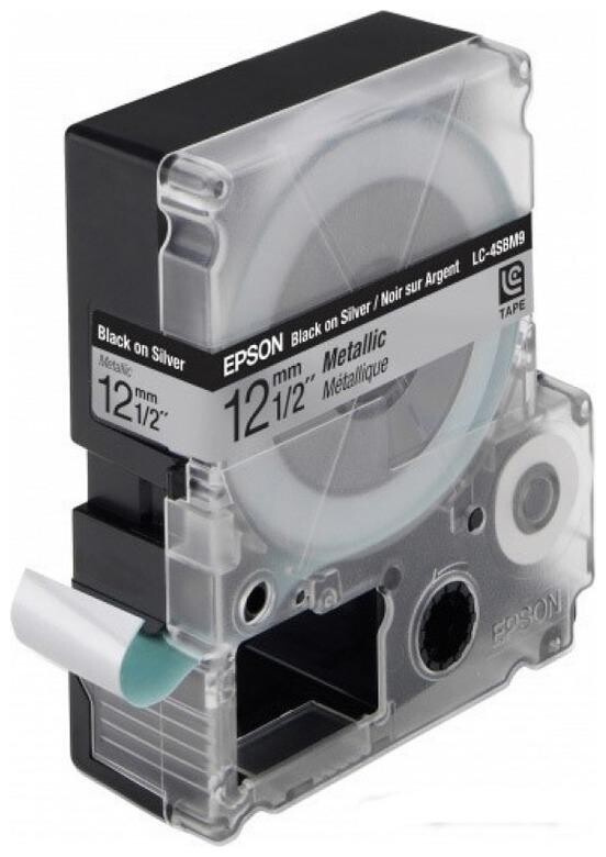 Epson LabelWorks LK-4SBM C53S654019 12mm x 9m, black text / silver tape, fluorescent, original tape