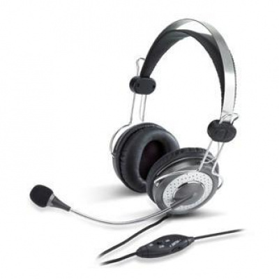 Product description Genius HS-04SU 31710045100, sluchátka s mikrofonem, ovládání hlasitosti, černo-stříbrná, 3.5 mm jack