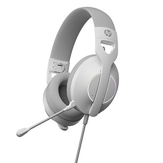 HP DHE-8003U, sluchátka s mikrofonem, drátová, bílá, 7.1 surround (virtuálně), podsvícená, USB