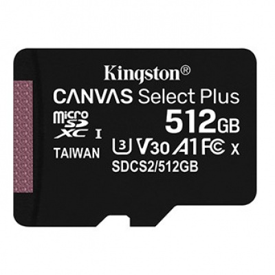 Product description Kingston memory card Canvas Select Plus, 512GB, micro SDXC, SDCS2/512GBSP, UHS-I U1 (Class 10), A1