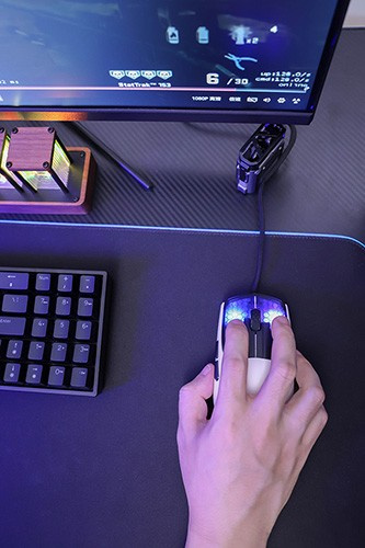 The backlighting is implemented in an unconventional way, with the light focused on the right and left buttons, giving the mouse a stylish and modern look. The braided durable cable provides flexibility and minimizes potential pulling or tangling, thereby enhancing comfort and accuracy when using the mouse.