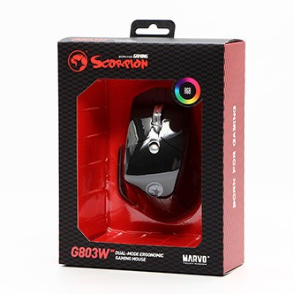 Marvo G803 with an ergonomic design, powerful chipset, dual-mode connection, adjustable DPI, silent buttons, and stylish RGB backlighting will become your indispensable assistant for work and entertainment.