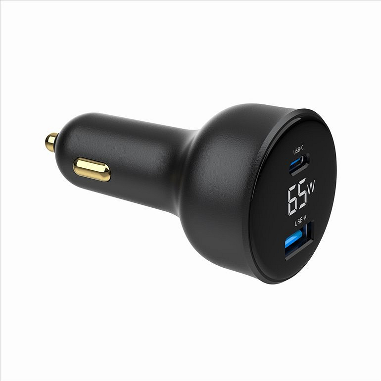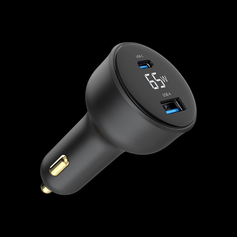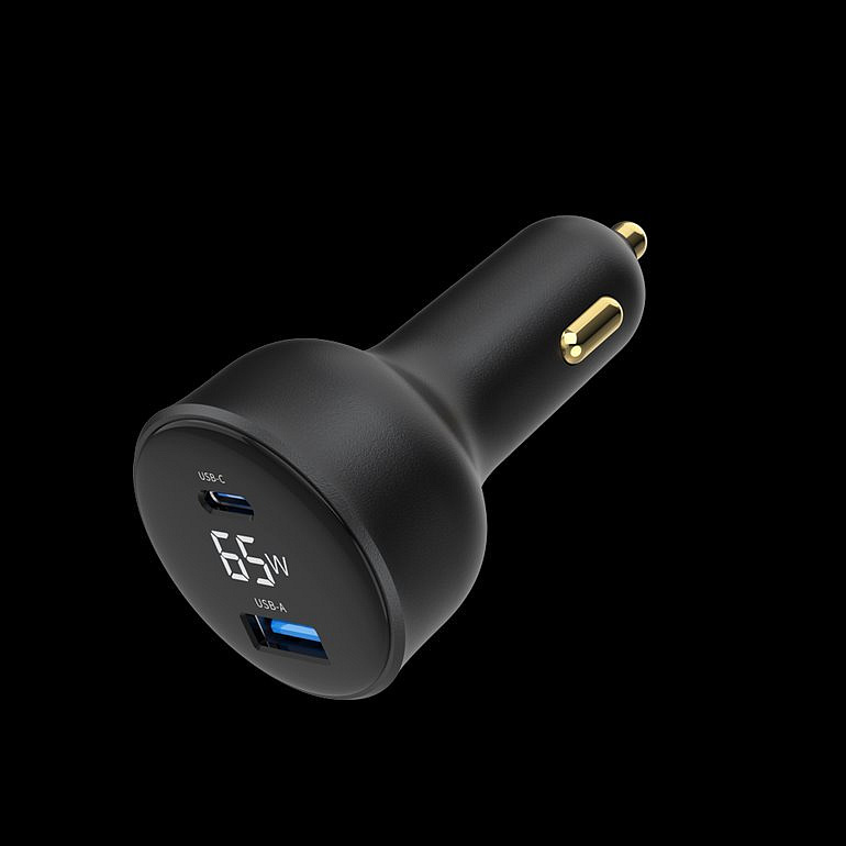 PURE POWER 65 W output for your laptop, smartphone, or iPhone with a Type-C connector* Faster charging: ideal for short trips and commuting Helps keep your phone battery charged while using high-energy-consuming music or navigation apps Convenient LCD display shows charging status Features 2-port car fast charger PowerDelivery (PD) with USB Type-C and 30 W output Type-C port supports 65 W PD, Type-A port supports 18 W QC 3.0 Supports simultaneous fast charging on both ports Practical LCD display shows charging status Intelligent protection against overcurrent, overvoltage, and short circuit Specifications Input voltage: 12 - 24 V?, max. 7.0 A Output USB-A: 5.0 V? 3.0 A, 9.0 V? 3.0 A, 12.0 V? 2.5 A (max. 30 W) USB-C Output: 5.0 V? 3.0 A, 9.0 V – 3.0 A, 12.0 V – 3.0 A, 15.0 V – 3.0 A, 20.0 V – 3.25 A (max. 65 W) Output USB-A+USB-C: 5.0 V – 3.0 A, 9.0 V – 2.0 A, 12.0 V – 1.5 A + 5.0 V – 3.0 A, 9.0 V – 3.0 A, 12.0 V – 3.0 A, 15.0 V – 3.0 A, 20.0 V – 2.25 A (max. 45 W + 18 W)