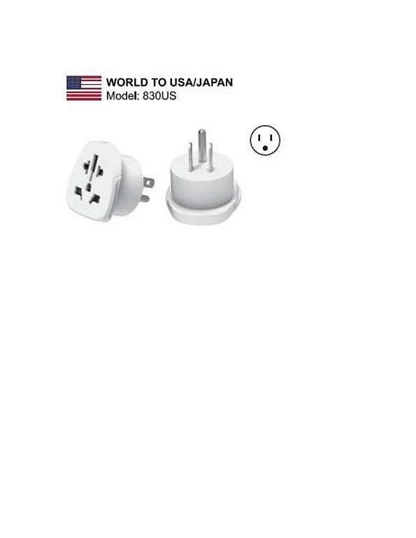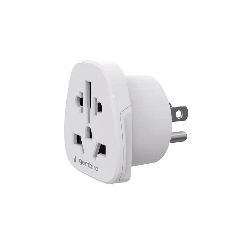 This adapter allows the connection of any electrical device to standard American outlets. Works with plugs from over 200 countries. Features Travel Adapter Grounded plug fits into any standard socket in the USA. The universal socket accepts plugs from over 200 countries. Specifications Rated power: 100–250 V, 10 A (max.) 2500 W). Plug: American plug (male). Socket: Universal socket (female). Material: Fire-resistant PC + copper.