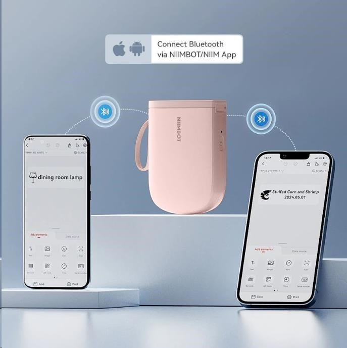 The label maker Niimbot D11-H Smart 1AA57321601 allows the creation of barcodes and QR codes, texts, frames, icons, and images. Using the free Niimbot App (Android/iOS), you can conveniently design labels directly from your smartphone or tablet. The Bluetooth module supports connection to up to six devices simultaneously, making it an ideal tool for sharing in an office or home.
