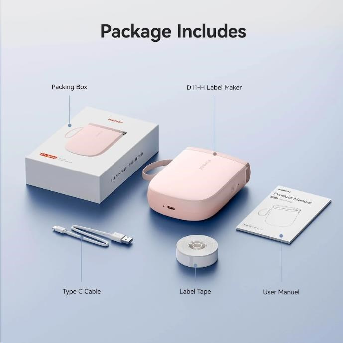 Label Maker Niimbot D11-H Smart 1AA57321601, wrist strap, USB-C charging cable, set of white self-adhesive labels 12 x 40 mm (160 pcs)