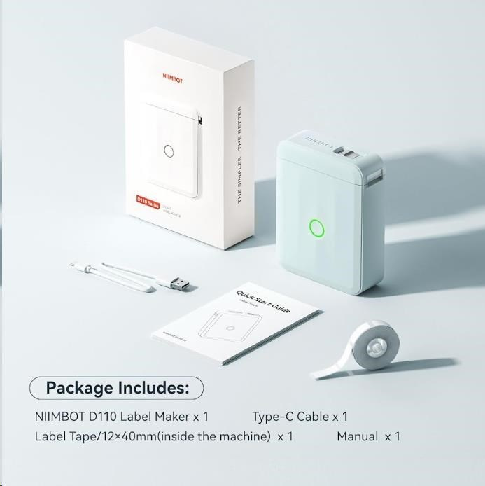 Label Maker Niimbot D110-M Smart 1AA56301619, wrist strap, USB-C charging cable, set of white self-adhesive labels 15 x 30 mm (210 pcs)