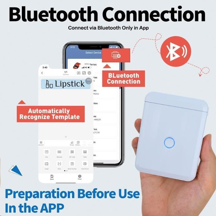 Thanks to thermal printing technology, it provides clean and maintenance-free operation with high output quality. With a resolution of 203 dpi and a print width of up to 12 mm, it creates sharp, readable, and durable labels. The Niimbot App, available for Android and iOS, allows easy label designing, including adding texts, icons, QR codes, barcodes, and frames.