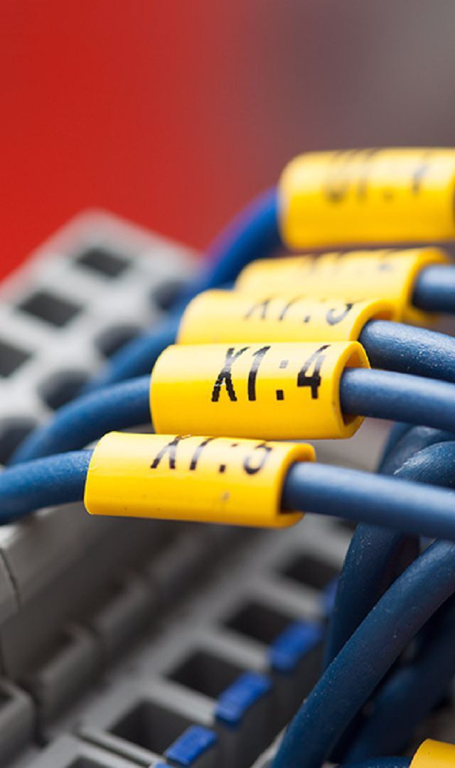- Self-adhesive labels widths 6, 9, and 12mm, colors yellow, white, or silver