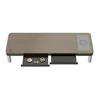- For optimal monitor height - Reduces neck strain - Two drawers for office supplies - Integrated 15W wireless charger - Docking station* - Metal legs with detachable option - Load capacity: 20 kg - Dimensions: 590 x 215 x 97 mm - Connection: USB-C cable 0.6 m (included)