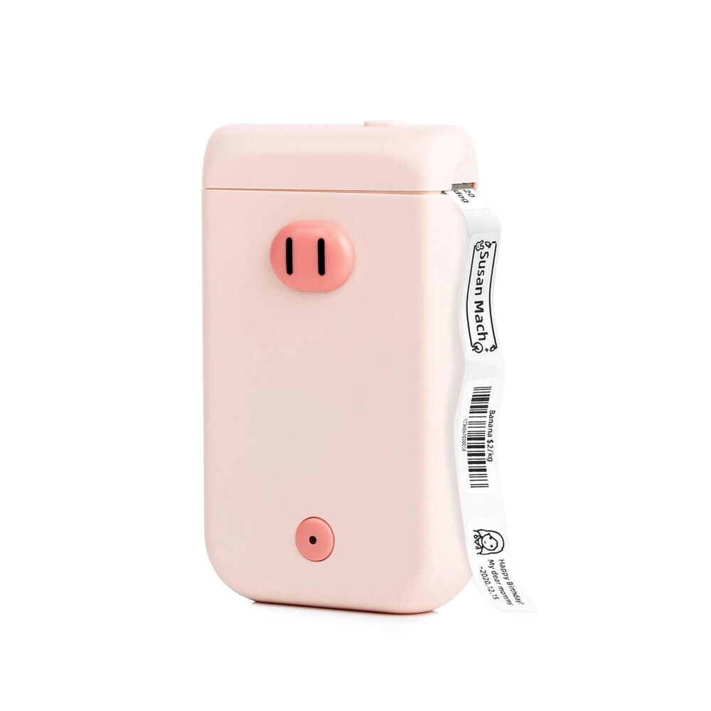 Label Maker PONY D30S Mini Pink Pig is a pocket thermal printer. Print easily and quickly from your mobile or tablet using Bluetooth wireless connection, or the Print Master app for Android or iOS. The PONY D30S label maker can print barcodes, text, images, and icons on eco-friendly adhesive labels. With this cute and colorful label maker featuring a piglet design, which will be a handy helper in your household, you can label spice jars in the kitchen, organizers for cosmetics or jewelry, school notebooks, cables, etc. It is also suitable for creating price tags for your craft products or for decorative name tags on gifts. With us, you will also find self-adhesive labels in various colors with beautiful and decorative designs.