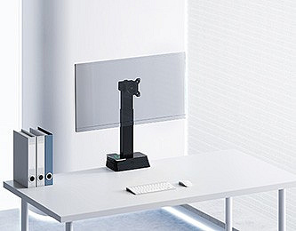The monitor stand with automatically adjustable height Powerton ERGO LEVION offers a top-notch solution for workplace ergonomics – combining advanced electric adjustment with an elegant, modern design.