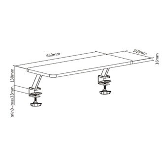 Poweron ERGO SENZA stand is secured to the table top using two durable clamps, so you don't have to worry about its stability. The clamps are designed for table tops with a maximum thickness of 33 mm and will raise your monitor or laptop by 13 cm.