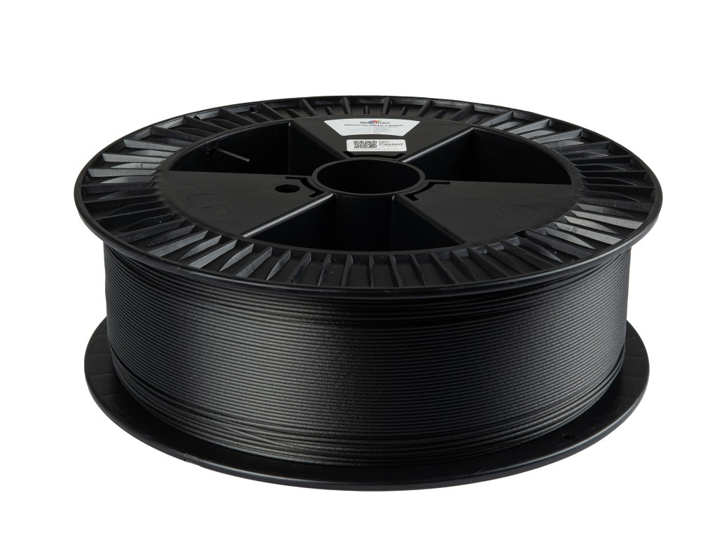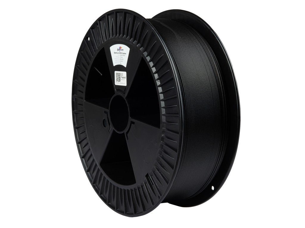 Spectrum PET-G Carbon is a modified filament based on PET-G mixed with carbon fibers, which contributes to significantly higher stiffness, hardness, and tensile strength while maintaining low shrinkage and very good adhesion to build platforms typical for pure PET-G. A 10% addition of carbon fibers allows for obtaining matte surfaces of printed materials, which significantly enhances the aesthetic properties of the prints.