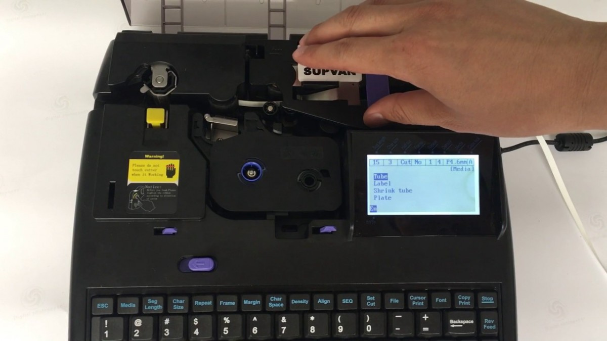 The marker prints on sleeves with a diameter of up to 6.0 mm and self-adhesive labels with widths of 6, 9, and 12 mm. When using the original software - option to print Czech diacritics. The software also allows file transfer from Excel or via a memory card, and the option to print a logo or symbol.