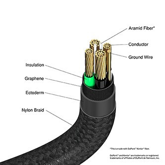 This cable is designed for demanding everyday use and features an outer nylon braid and a core of hardened aramid fibers, offering excellent strength and wear resistance. It is tested to withstand more than 50,000 bends and maintains peak performance even with constant bending. Its reinforced alloy metal connectors further enhance durability and ensure reliable and long-lasting performance.