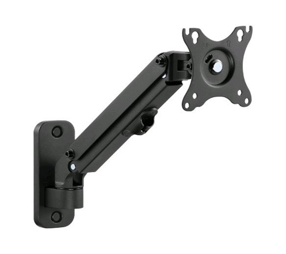 Material: aluminum, steel, plastic Surface finish: powder coating Color: black with fine texture Screen size: 17" - 27" Load capacity: 2 ~ 7 kg Compatible with Vesa: 100x100, 75x75 mm Tilt range: +90° ~ -45° Swivel range: +90° ~ -90° Screen rotation: +180° ~ -180° Installation: wall-mounted Cable management: yes Net weight: 1.3 kg