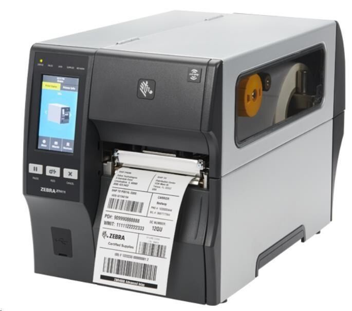 label printer, midrange printer, thermal transfer, 8 dots/mm (203 dpi), media width (max.): 114 mm, print width (max.): 104 mm, roll diameter (max.): 203 mm, speed (max.): 356 mm/s, display (touch screen, colour), real time clock, USB (2x), RS232, Bluetooth (Class 5.3), Ethernet, Wi-Fi (802.11ax), RAM: 256 MB, Flash: 512 MB, emulation: EPL, ZPL, ZPLII, incl.: power cable (EU, UK), order separately: interface cable